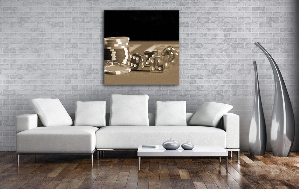 deyoli Glücksspiel Würfel und Poker Chips Format: 60x60 Effekt: Sepia als Leinwandbild, Motiv fertig