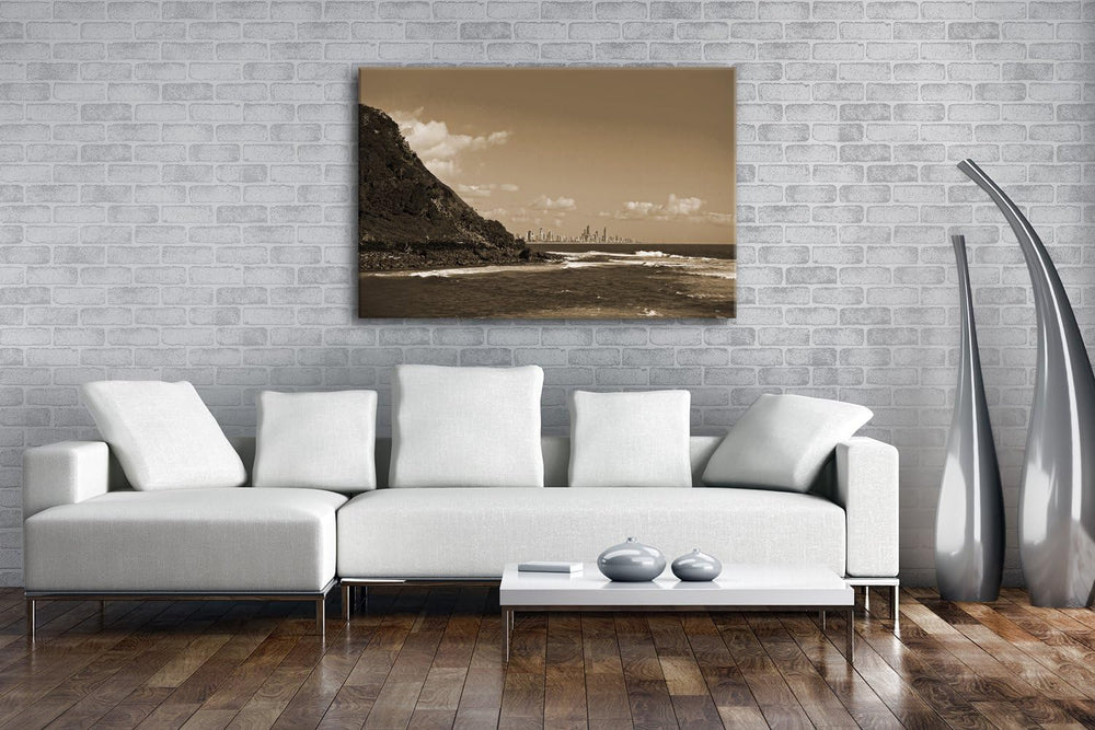 deyoli Gold Coast Küste von Australien Format: 80x60 Effekt: Sepia als Leinwandbild, Motiv fertig ge