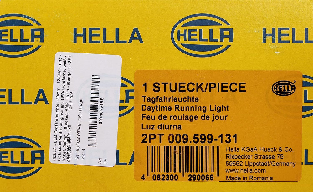 HELLA - LED-Tagfahrleuchte - 83mm - 12V - rund - Lichtscheibenfarbe: glasklar - LED-Lichtfarbe: gelb