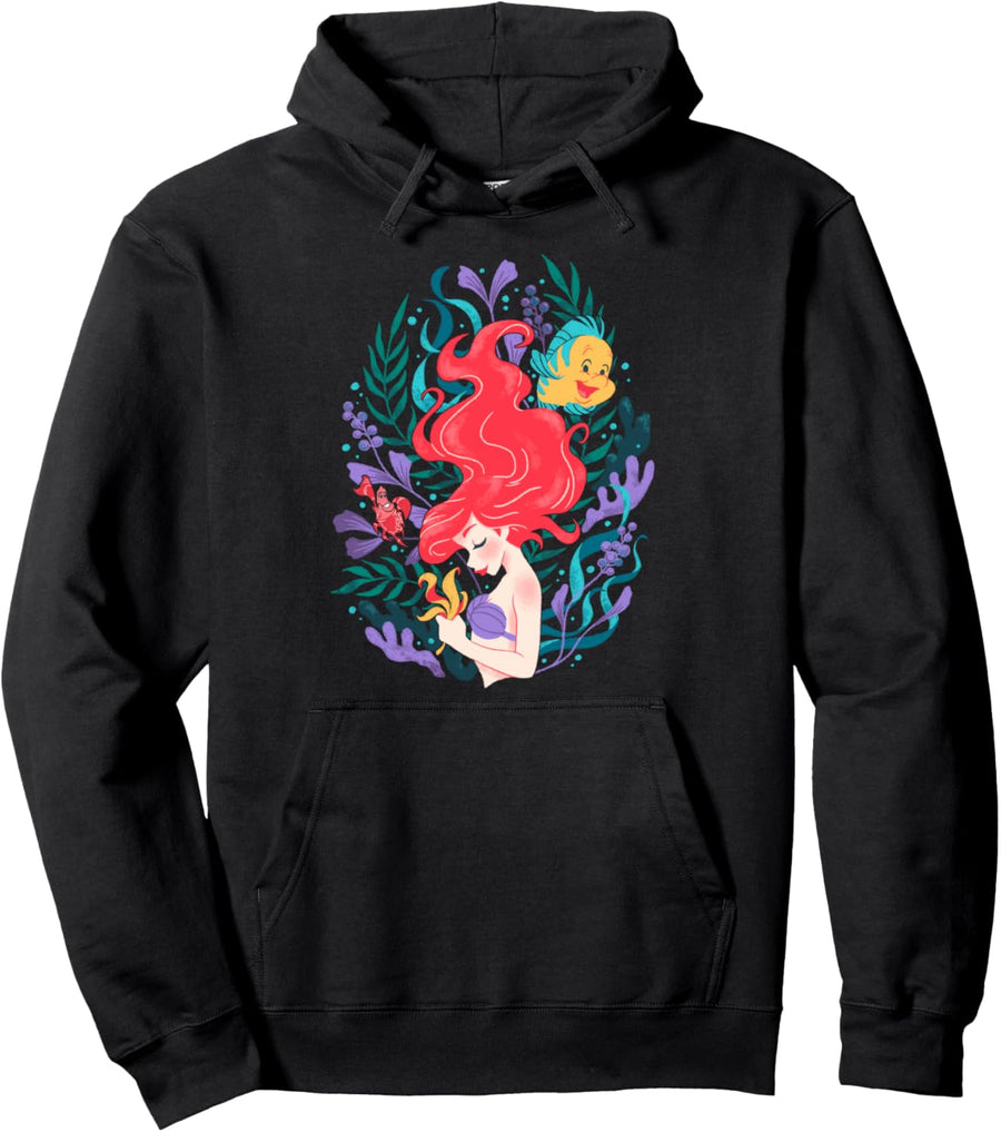 Disney The Little Mermaid Ariel Floral Watercolor Portrait Pullover Hoodie