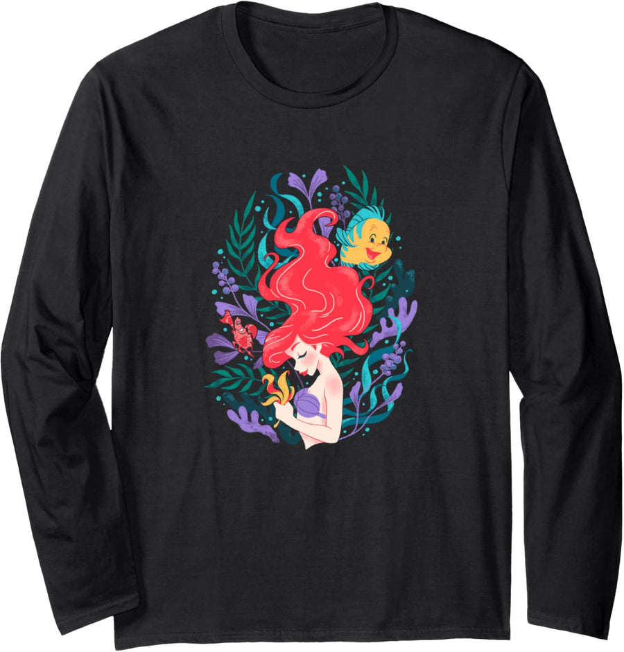 Disney The Little Mermaid Ariel Floral Watercolor Portrait Langarmshirt