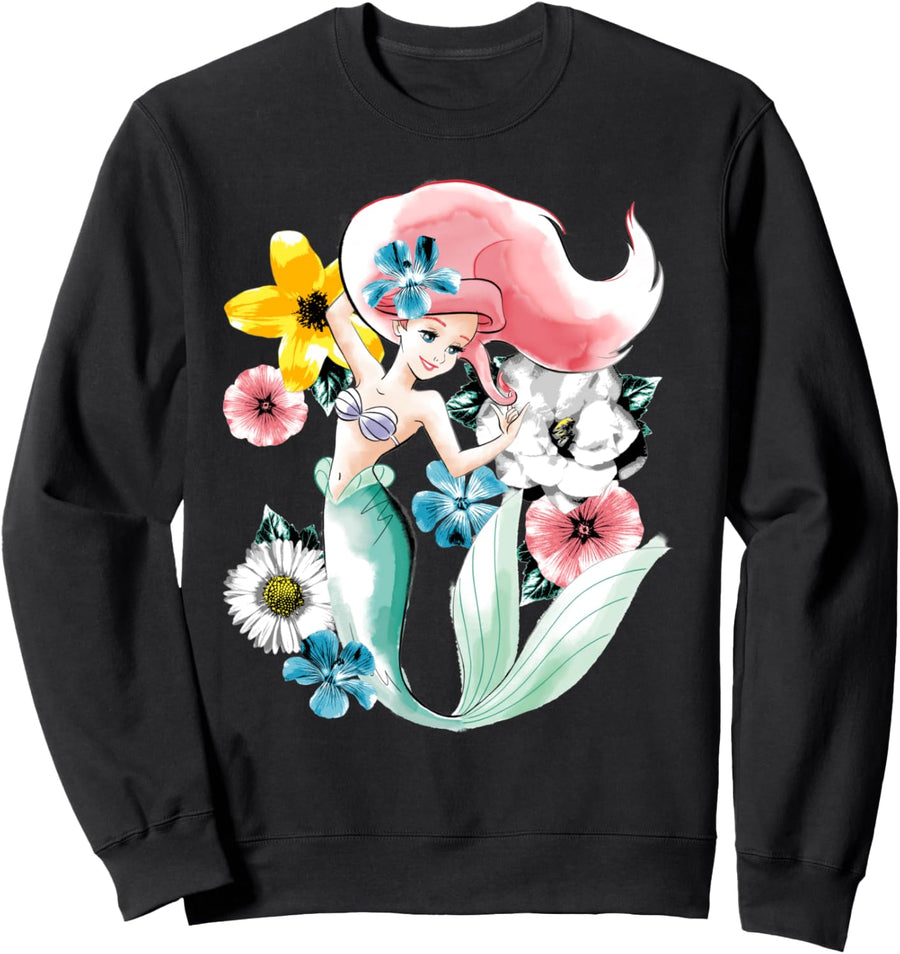 Disney The Little Mermaid Ariel Floral Watercolor Portrait Sweatshirt