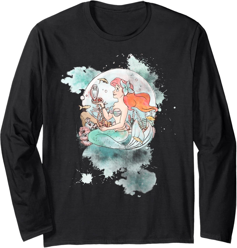 Disney The Little Mermaid Ariel Pearl Watercolor Portrait Langarmshirt