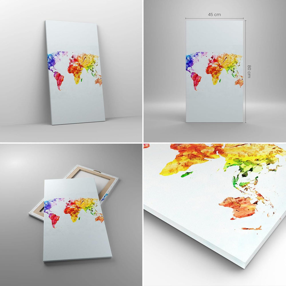 Bilder auf Leinwand Welt Karte Bunt Kontinente Leinwandbild mit Rahmen 45x80cm Wandbilder Dekoration