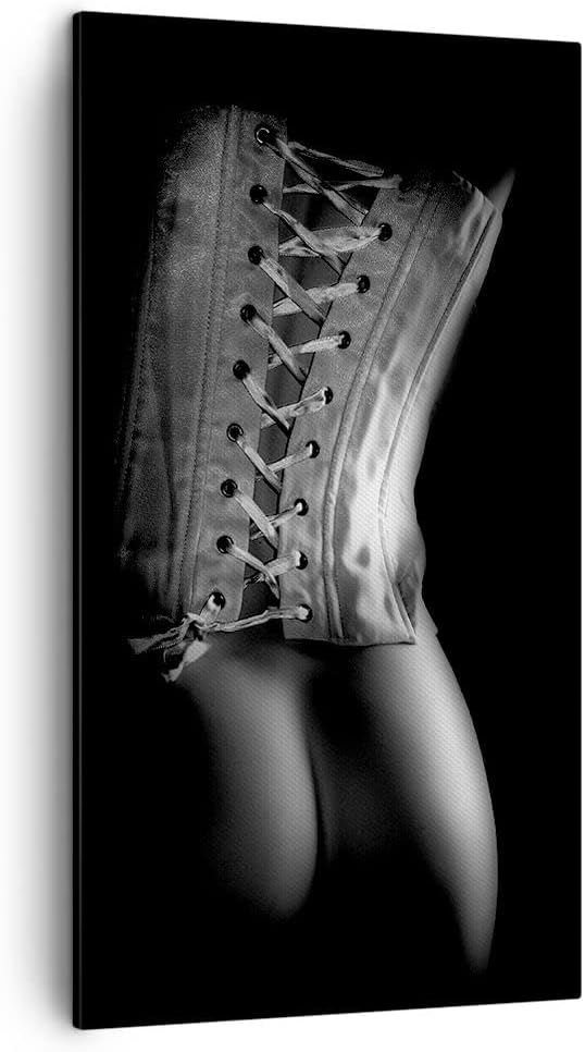 Bilder auf Leinwand Weiblicher Körper Leder Korsett Frau Leinwandbild mit Rahmen 45x80cm Wandbilder