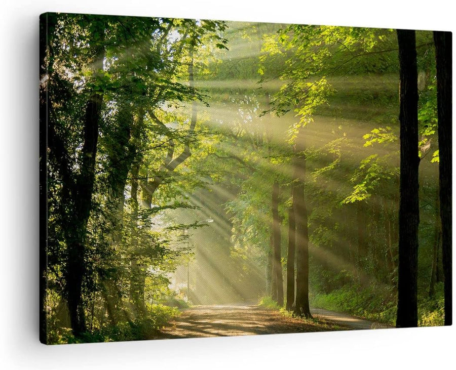 Bilder auf Leinwand Wald Baum Natur Leinwandbild mit Rahmen 70x50cm Wandbilder Dekoration Wohnzimmer