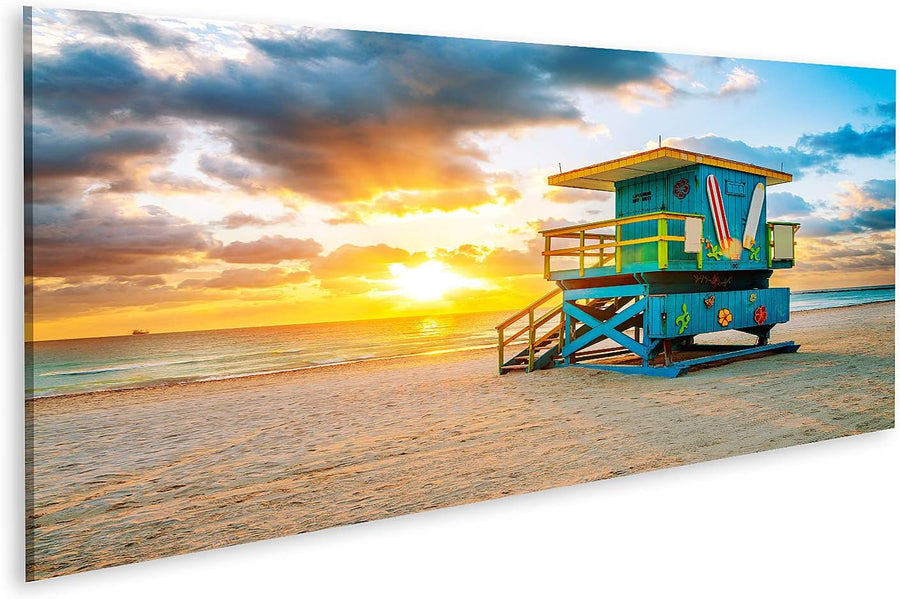 islandburner Bild auf Leinwand Miami Strand Florida Bilder Wandbilder Poster Leinwand 100x57cm, Lein