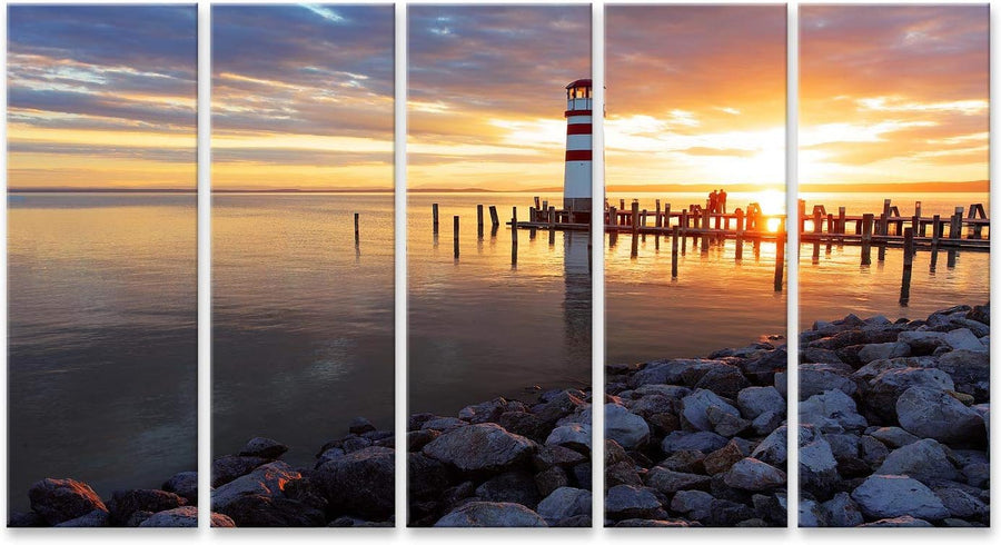 islandburner Bild auf Leinwand Meer Sonnenuntergang Mit Leuchtturm Wandbild Poster Kunstdruck Bilder