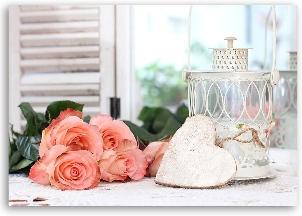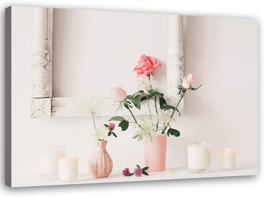 Feeby Wanddeko Blumen Leinwandbild Kunstdruck Shabby Chic Beige 90x60 cm M14330 90x60 cm, M14330 90x