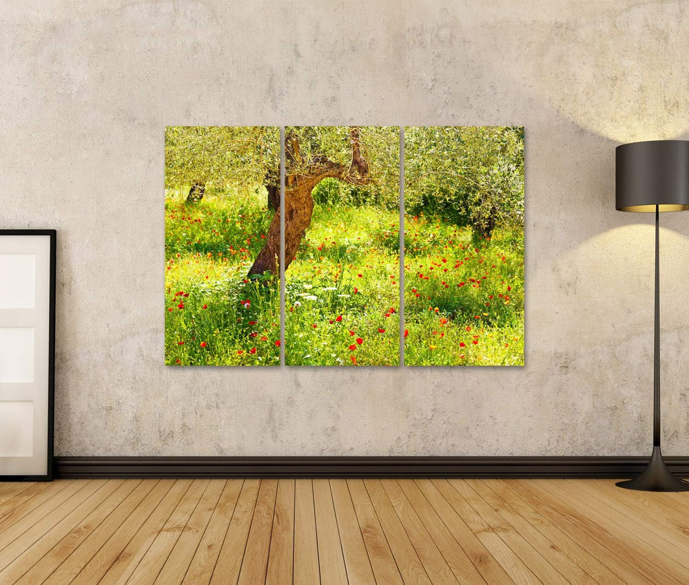 islandburner Bild auf Leinwand Mohnblumen Wiese Baum Bilder Wandbilder Poster Leinwand 130x80cm - 3