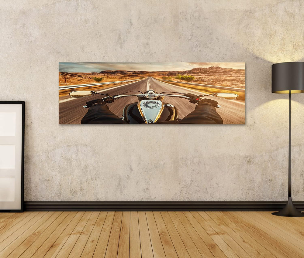 islandburner Bild auf Leinwand Motorrad Fahrer auf einsamen US Highway im Sonnenuntergang Bilder Wan