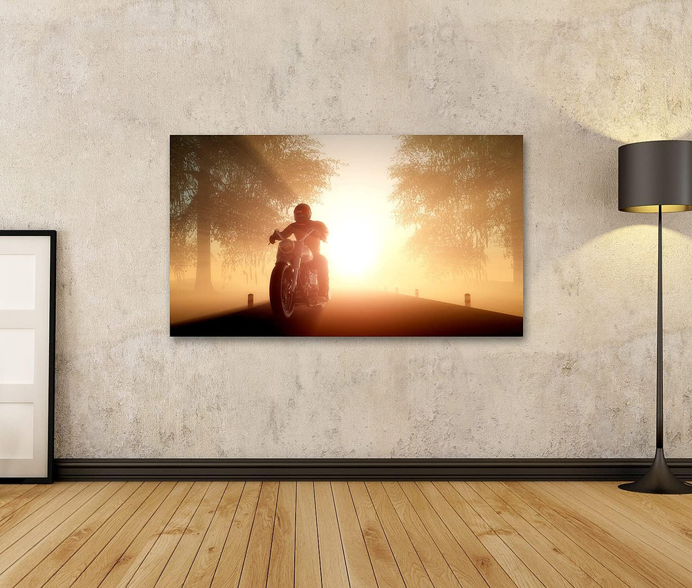 islandburner Bild auf Leinwand Motorrad Fahrer Auf Landstrasse Im Sonnenlicht Bilder Wandbilder Post