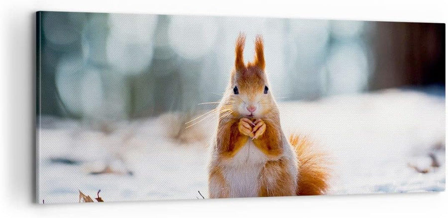 Panorama Bilder auf Leinwand 100x40cm Leinwandbild Eichhörnchen Winter Schnee Essen Gross Wanddeko B