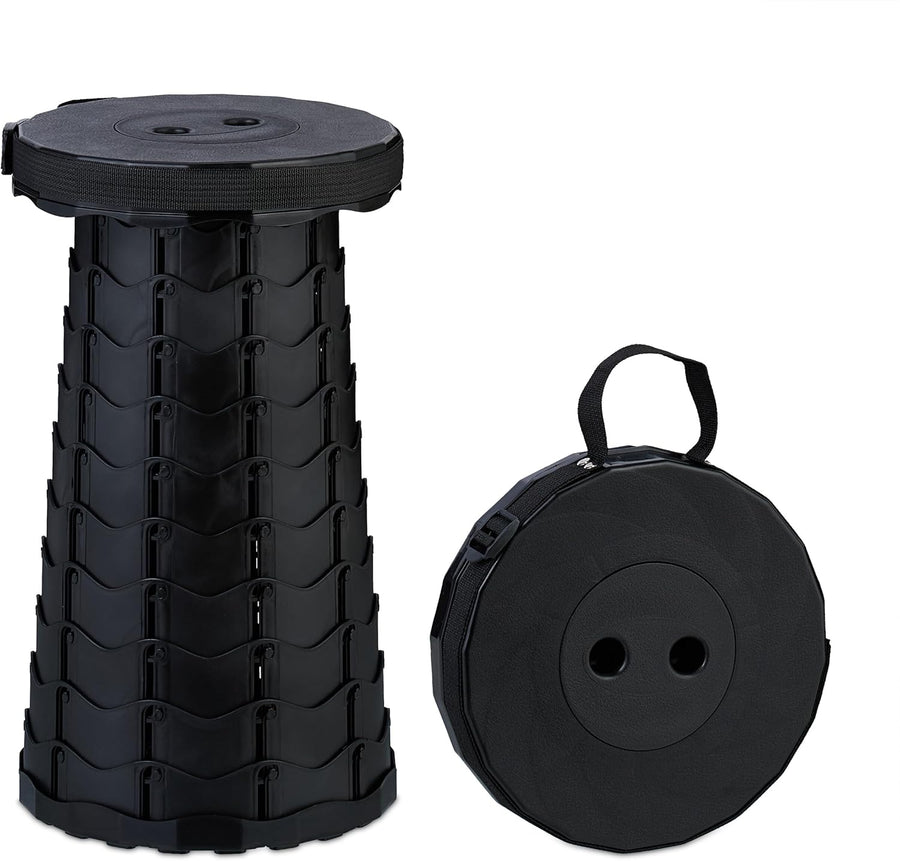 Relaxdays Teleskophocker, faltbar, Tragegurt, Outdoor, höhenverstellbarer Campinghocker, HBT 44,5 x