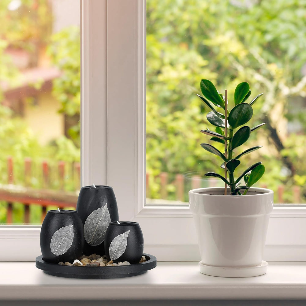 Relaxdays Teelichthalter Set mit Tablett & Steinen, Ø 19,5 cm, Tischdeko Wohn- & Esszimmer, Kerzenha