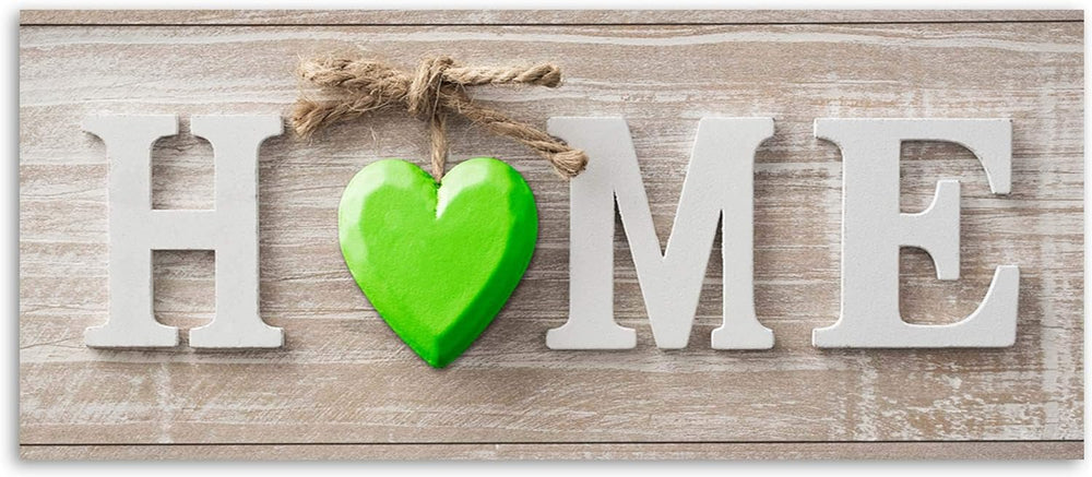 Feeby Wanddeko Home 120x40 cm Leinwandbild Kunstdruck Herz Vintage rustikal Grün Leinwandbild 120x40