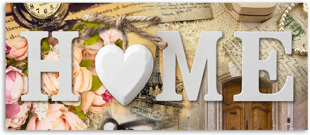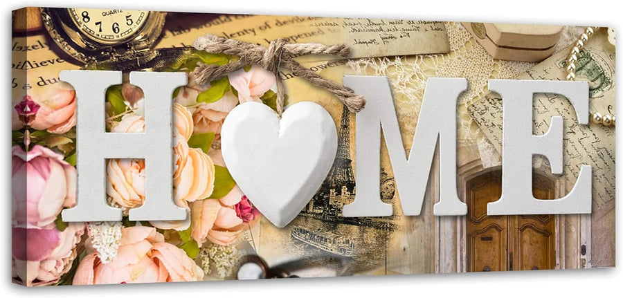 Feeby Wanddeko Home 120x40 cm Leinwandbild Kunstdruck Herz Vintage Paris Wohnung Beige Leinwandbild