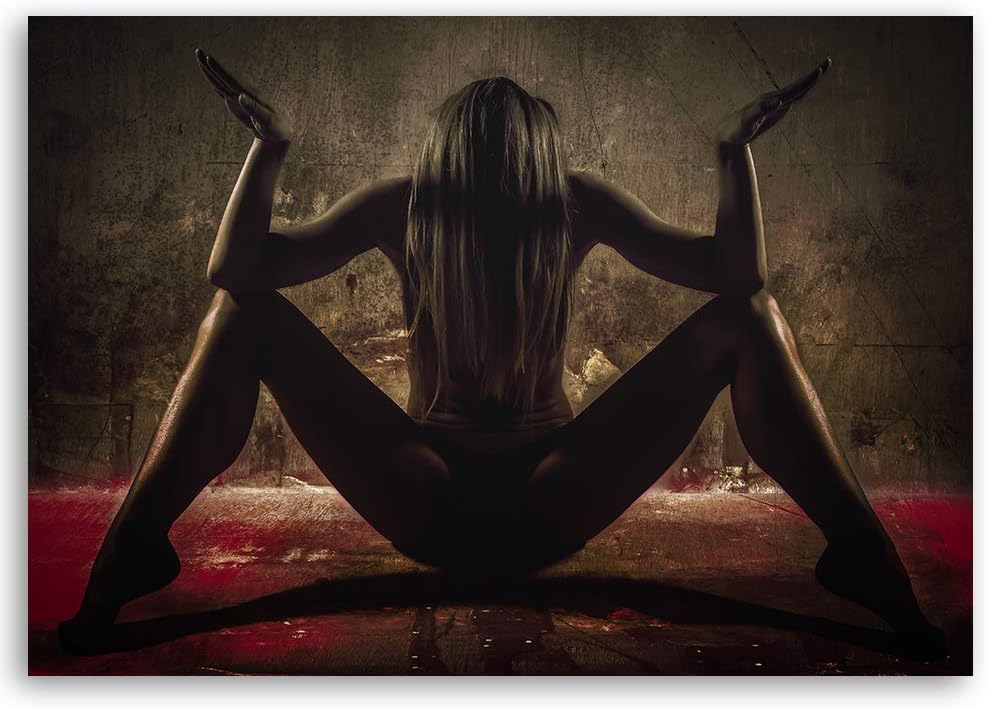 Feeby Wanddeko Glamour Sexy Frau Bild Kunstdruck modern für Schlafzimmer Braun 90x60 cm Deko Paneel