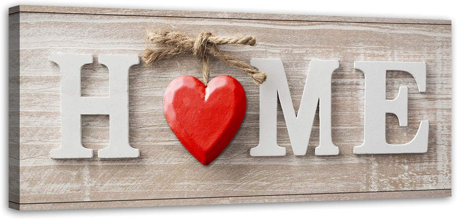 Feeby Wanddeko Home 120x40 cm Leinwandbild Kunstdruck Wandekoration Herz Vintage rustikal Rot Leinwa