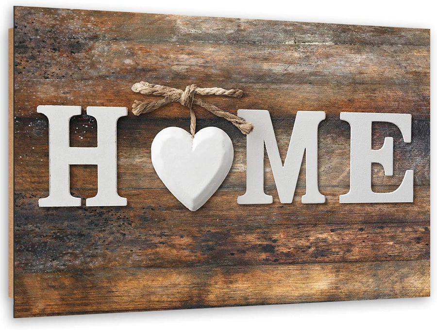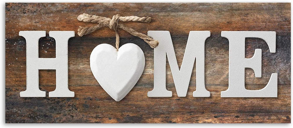 Feeby Wanddeko Home 120x40 cm Leinwandbild Kunstdruck Wandekoration Herz Vintage rustikal Braun Lein