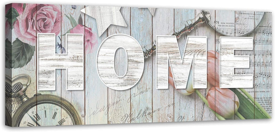 Feeby Wanddeko Home 100x40 cm Leinwandbild Kunstdruck Wanddekoration Wohnzimmer Wohnung Beige Leinwa