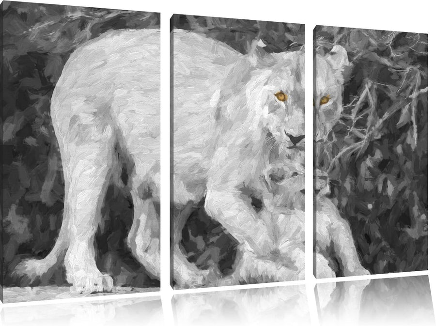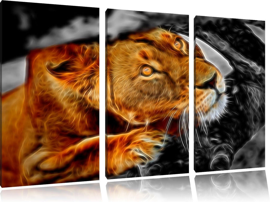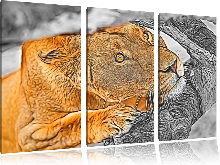 listige Löwin schwarz/weiss Deluxe 3-Teiler Leinwandbild 120x80 Bild auf Leinwand, XXL riesige Bilde