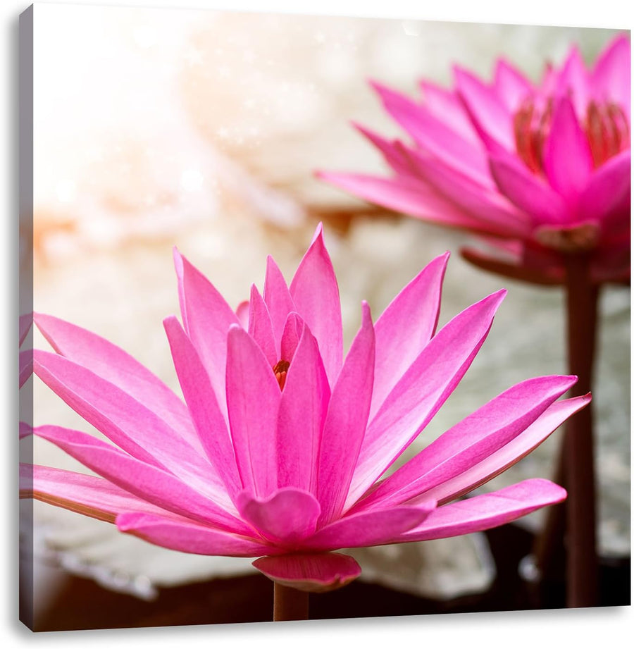 Lilafarbene Wasserlilie, Format: 70x70 auf Leinwand, XXL riesige Bilder fertig gerahmt mit Keilrahme