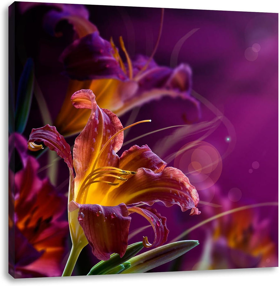 Lilie mit Wassertropfen, Format: 70x70 auf Leinwand, XXL riesige Bilder fertig gerahmt mit Keilrahme