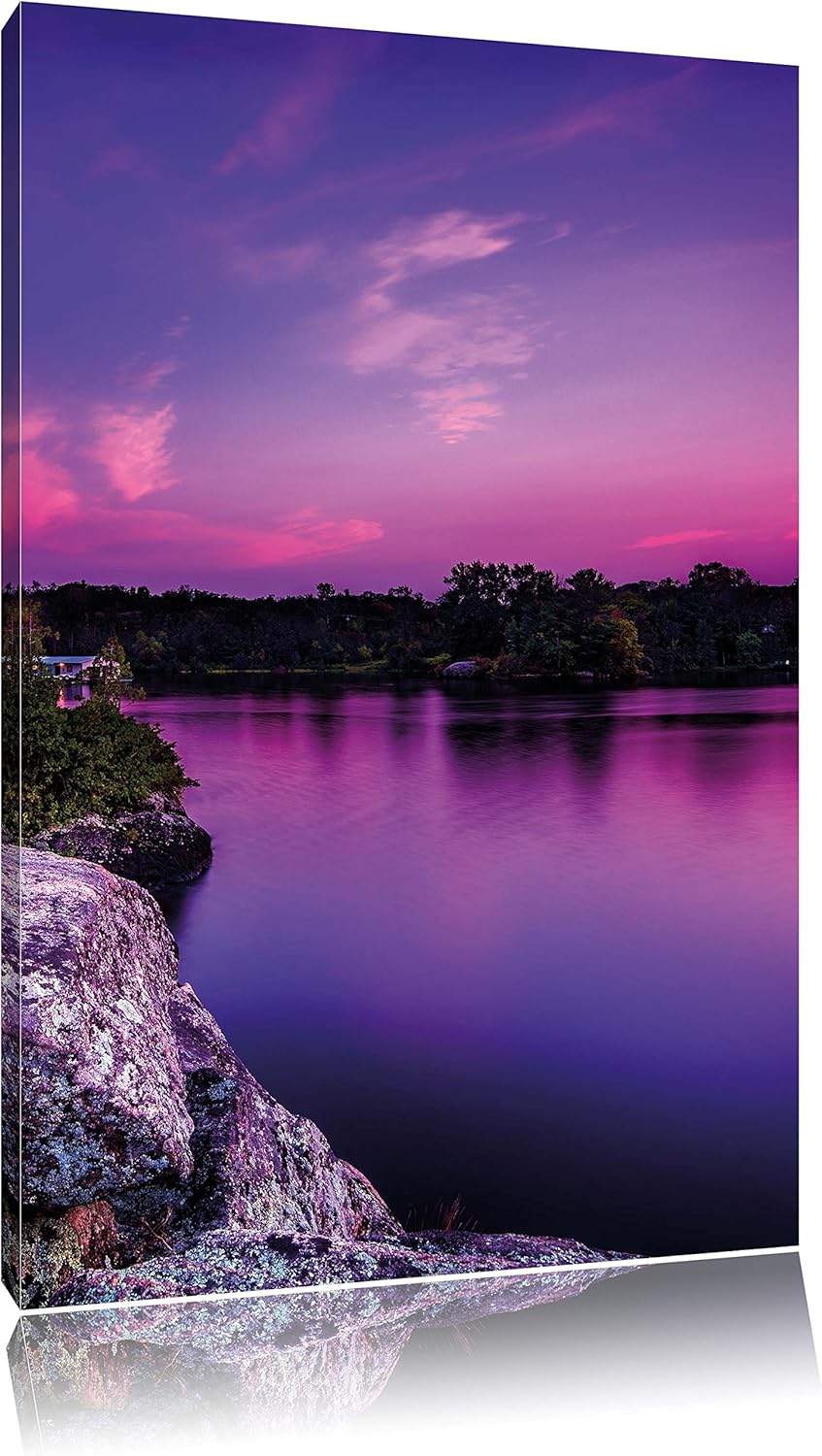 Lila Seelandschaft, Format: 100x70 auf Leinwand, XXL riesige Bilder fertig gerahmt mit Keilrahmen, K
