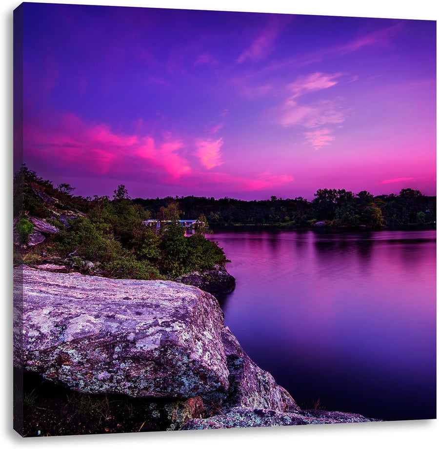 Lila Seelandschaft, Format: 70x70 auf Leinwand, XXL riesige Bilder fertig gerahmt mit Keilrahmen, Ku