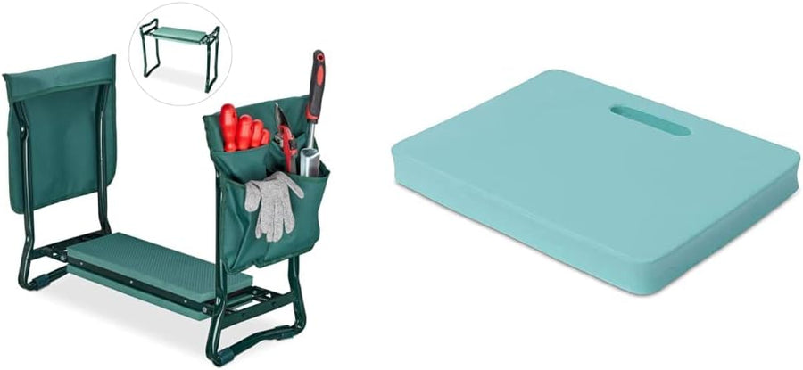 Relaxdays, grün Kniebank, weiches Kniekissen, 2 Taschen, klappbar, Kniehilfe Gartenarbeit, bis 150 k
