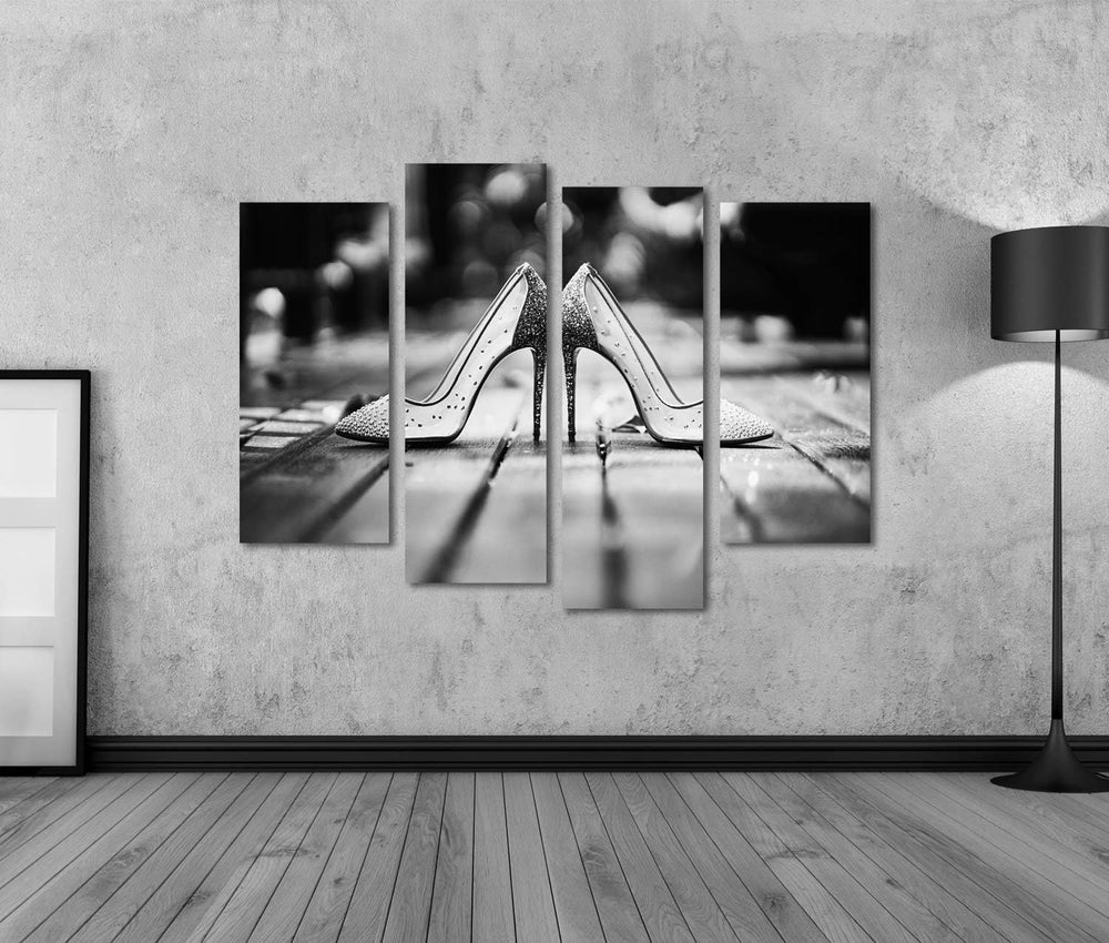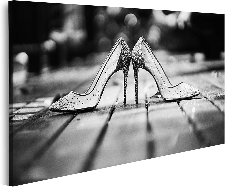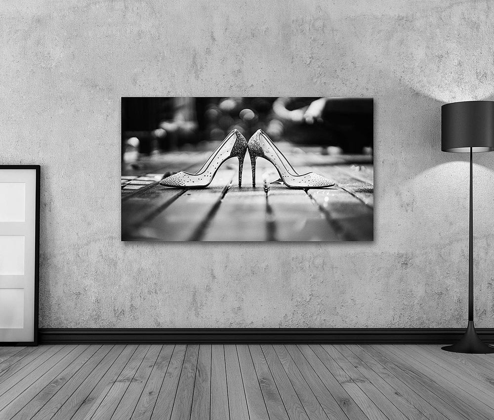 islandburner Bild auf Leinwand Niedriger Winkel High Heels Glitter Frauen Schuhe Holzboden Schwarz W