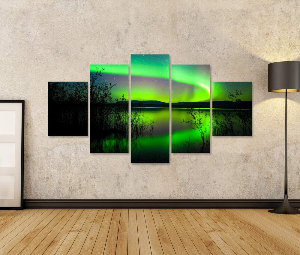 islandburner Bild auf Leinwand Nordlichter Gespiegelter See Wetterleuchten In Norwegen Bilder Wandbi