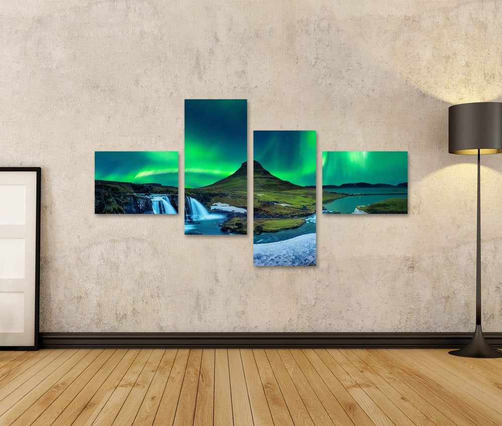 islandburner Bild auf Leinwand Nordlichter Aurora Borealis Bilder Wandbilder Poster Leinwand 120x40c
