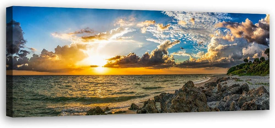 Feeby Wanddeko Sonnenuntergang Leinwandbild Kunstdruck Natur Blau 100x40 cm Leinwandbild 100x40 cm B