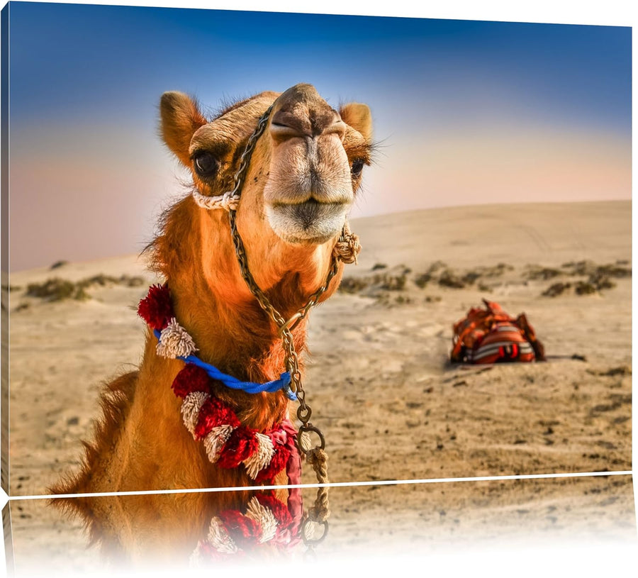 Lustiges Kamel in Wüste Format: 100x70 auf Leinwand, XXL riesige Bilder fertig gerahmt mit Keilrahme