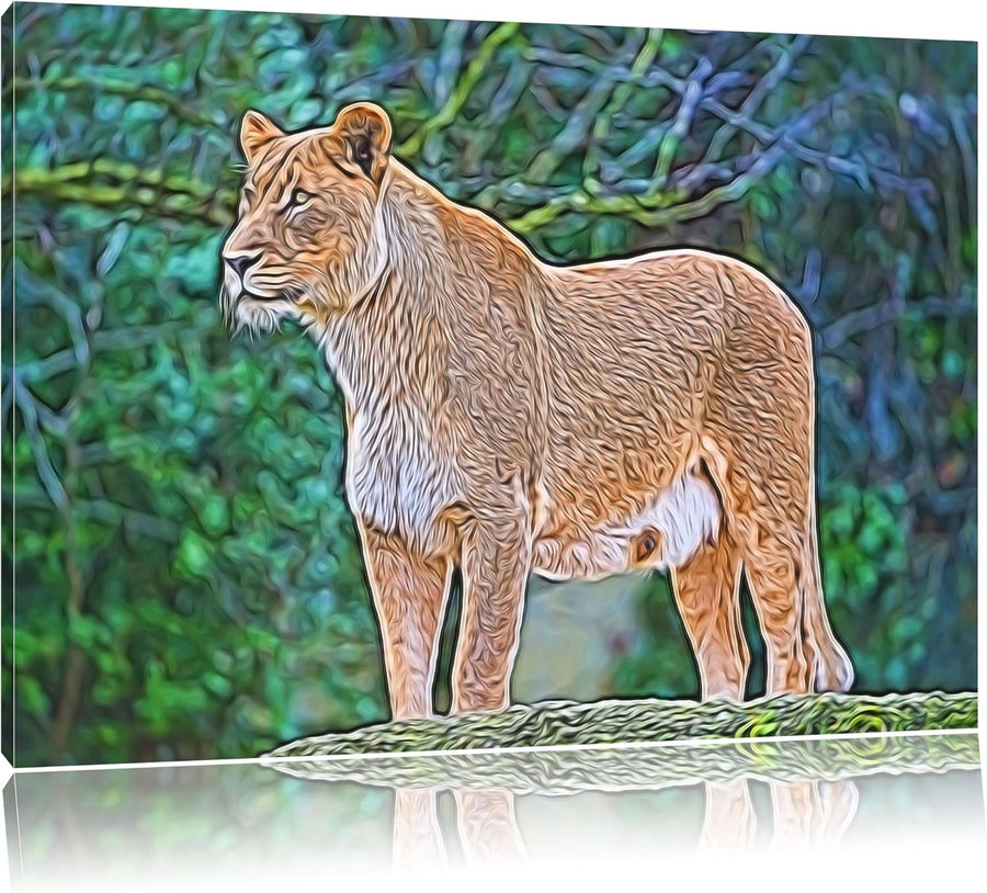 maiestätische Löwin Deluxe Format: 100x70 cm auf Leinwand, XXL riesige Bilder fertig gerahmt mit Kei