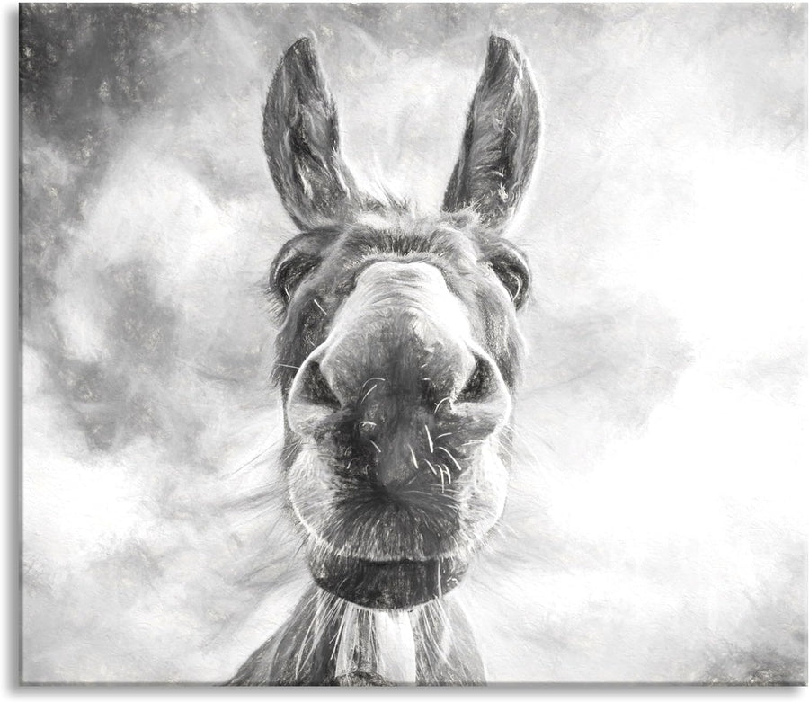 Lustiger Esel Kunst Herdabdeckplatte & Spritzschutz aus Echtglas | Für Herd-Kochfelder | 60x52 cm