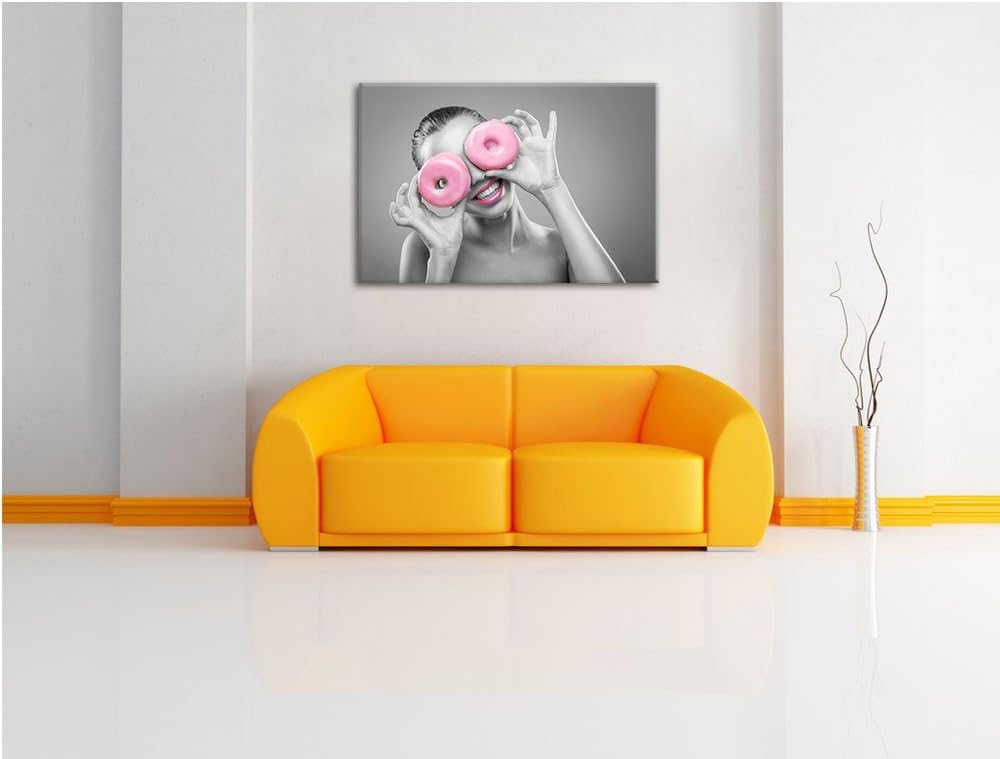 lustige Frau mit rosa Donut Augen schwarz/weiss Format: 100x70 auf Leinwand, XXL riesige Bilder fert