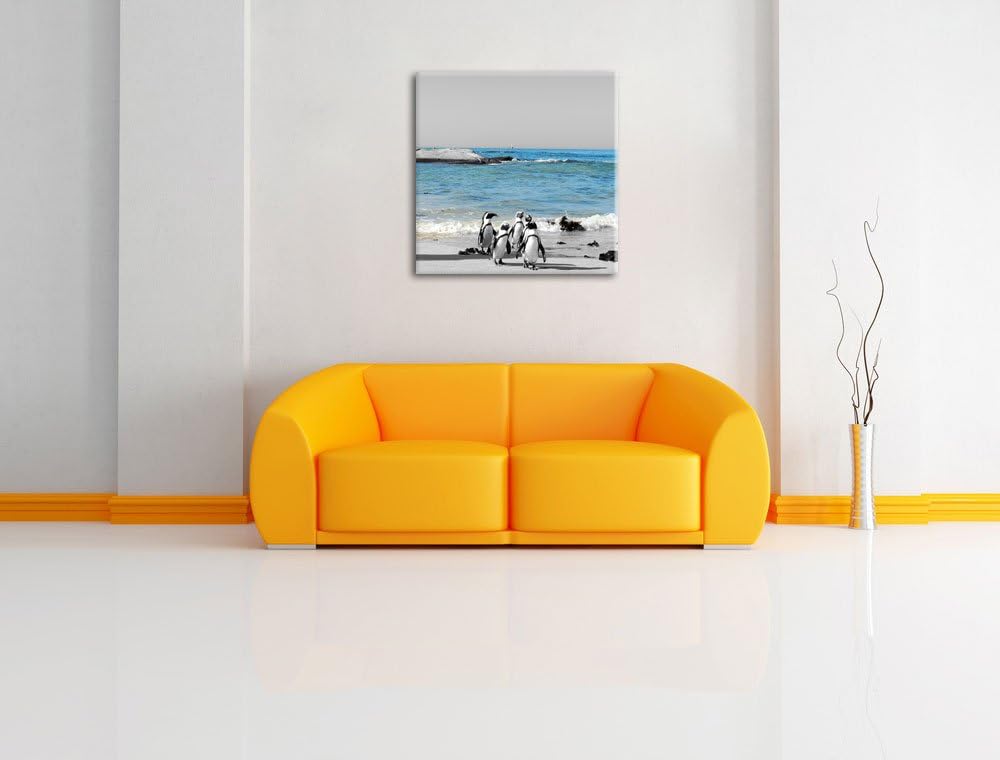 lustige Pinguine am Strand als Leinwandbild Quadratisch/Grösse: 70x70 / Wandbild/Kunstdruck/fertig b