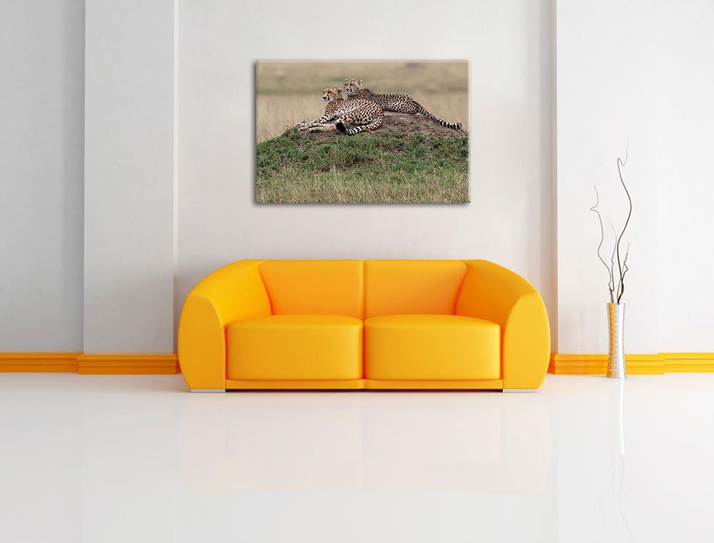 maiestätische Geparden auf Stein Leinwand, XXL riesige Bilder fertig gerahmt mit Keilrahmen, Kunstdr