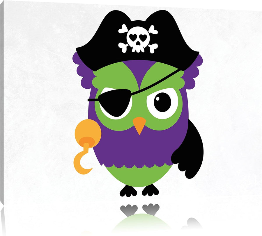Lustige Piraten Eule weiss, Format: 100x70 auf Leinwand, XXL riesige Bilder fertig gerahmt mit Keilr
