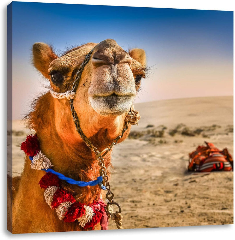 Lustiges Kamel in Wüste, Format: 70x70 auf Leinwand, XXL riesige Bilder fertig gerahmt mit Keilrahme