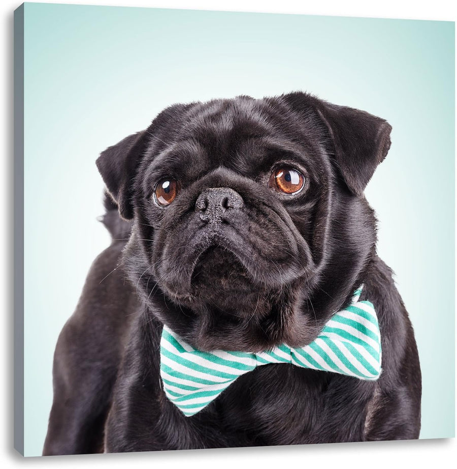 Lustiger Mops mit Fliege, Format: 70x70 auf Leinwand, XXL riesige Bilder fertig gerahmt mit Keilrahm