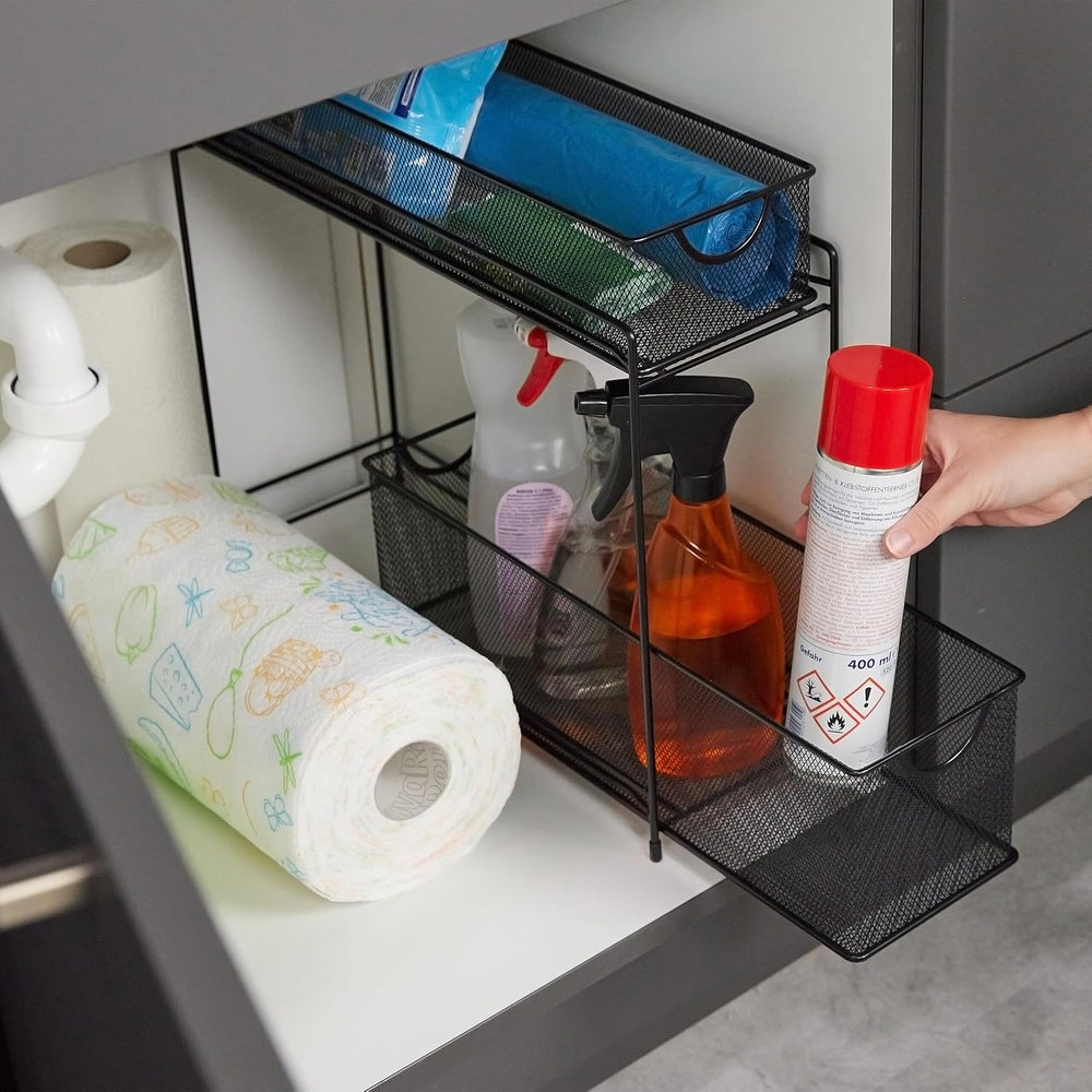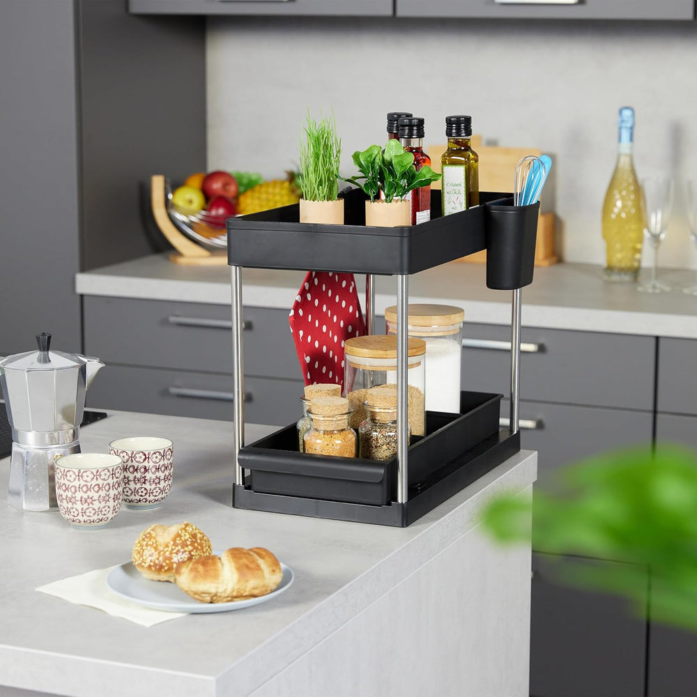Relaxdays, schwarz Küchenschrank Organizer, ausziehbares Unterschrank Regal, 2 Schubladen, Metall, H