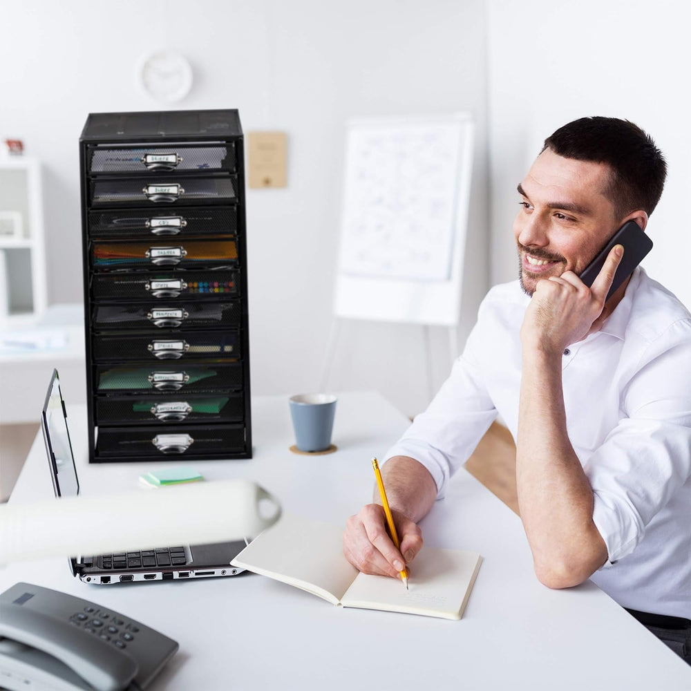 Relaxdays, schwarz Schubladenbox, 10 Schubfächer, für Din A4 Dokumente, Ordnungssystem für Schreibti