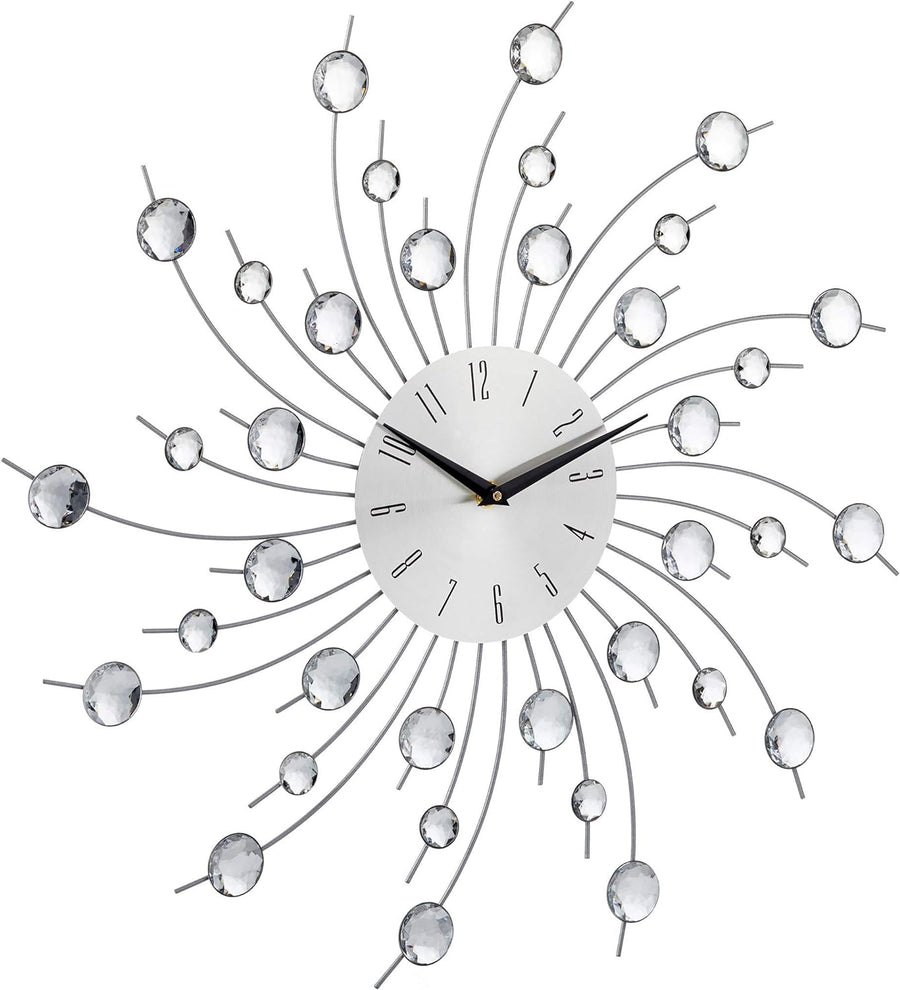 Relaxdays, Silber Wanduhr XL mit Glitzer, Küchenuhr gross, Moderne Wohnzimmeruhr, Analoguhr Wand, 50