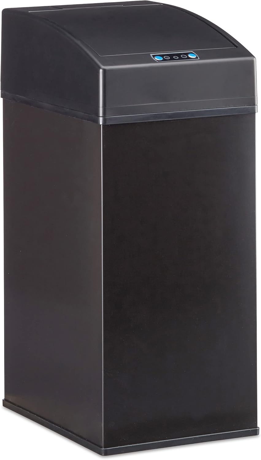 Relaxdays, schwarz Sensor Mülleimer, Automatikdeckel, Inneneimer mit Griff, hygienisch, 7 L, Stahl,