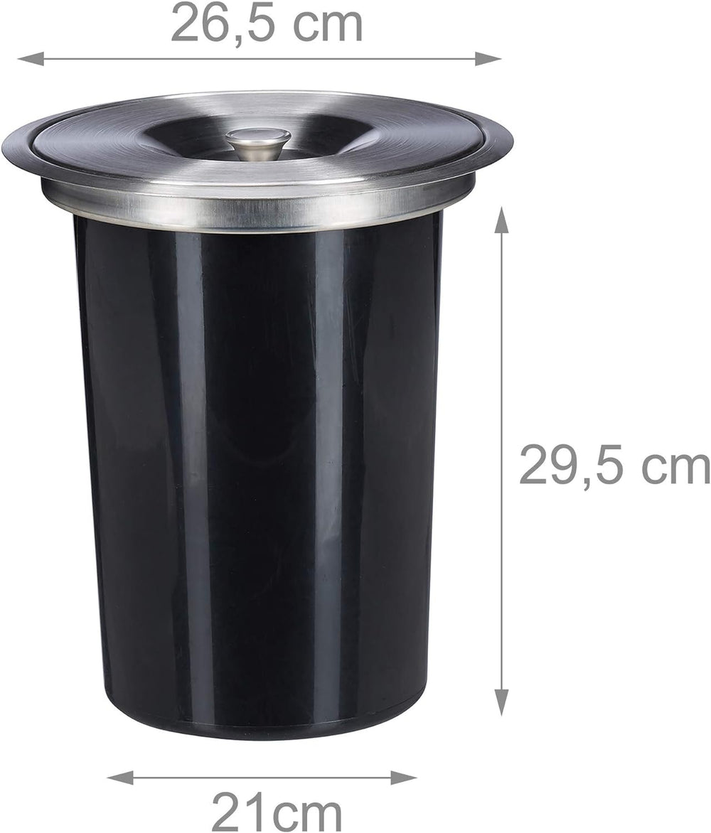 Relaxdays, Silber/schwarz Einbaumülleimer für Arbeitsplatte, Deckel, hygienisch, Biomüll, Edelstahl,