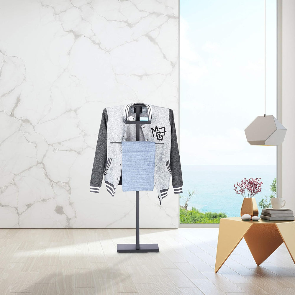 Relaxdays, schwarz Stummer Diener, Herrendiener, Kleiderbutler, mit Kleiderbügel und Hosenstange, Hx